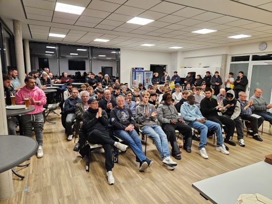 Im vollbesetzten neuen Vereinsraum fand gestern die Mitgliederversammlung des FCD statt. Näheres hierzu ist in der Stadionzeitung zum Spiel am Samstag, den 10. 11.24 gegen den Freiburger FC zu finden. Hier die Ergebnisse der Vorstandswahlen. Lt. Satzung sind in Jahren mit gerader Endziffer zu wählen: 2. Vorsitzender: Jan Kath, wie bisher Kassenwartin: Elke Niepenberg, wie bisher Geschäftsführer: Klaus Reichenbach, neu Pressewart: unbesetzt Beisitzer: Judith Boenke (wie bisher), Walter Ott (neu, bisher: Leiter Event-Team)) Jugendleiter: Marvin Schindler (bisher kommissarisch), Nick Schäffauer (neu) Jugendkassenwartin: Elke Niepenberg (wie bisher) > ![]() Blick in den Saal ![]() Jubilare von links: 50 Jahre: Günter Welz, jeweils 70 Jahre: Hans Bross und Wilfried Dufner ![]() Vorstand von links: Marvin Schindler (Jugendleiter), Nick Schäffauer (neu, stellv. Jugendleiter), Markus Schopp (Beisitzer), Jan Kath (2. Vorsitzender), Elke Niepenberg (Kassenwartin Hauptverein + Jugend), Michael Kuwert (1. Vorsitzender), Walter Ott (neu, Beisitzer), Horst Bühler (Sportl. Leiter), Klaus Reichenbach (neu, Geschäftsführer) -- Es fehlt Judith Boenke (Beisitzerin) | ||||||||||||||||||||||||||||||||||||||||||||||||||||||||||||||||||||||||||||||||||||||||||||||||||||||