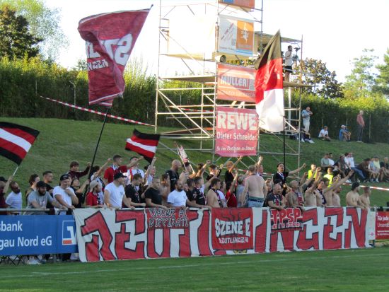 Oberliga: FCD 1 - SSV Reutlingen 1905 Fußball 0:1 (0:1) Die Gäste begannen offensiv und in der 10. Min. wurde FCD-Torhüter Jund erstmals geprüft. Sechs Muten später eine eigentlich harmlose Situation, ein Denzlinger Abwehrspieler hatte genügend Zeit, um den Ball zu Jund zurückzuspielen, er meinte jedoch seinen Gegner umspielen zu können, verlor dabei das Duell und so kamen die Gäste in Ballbesitz. Den daraus resultierenden strammen Torschuss konnte Jund nur nach vorne abwehren und Yannick Todt nutze dies, um den Ball zum 0:1 im Tor unterzubringen. Die Partie spielte sich danach hauptsächlich zwischen den Strafräum ab und erst in der Schlussphase lagen wieder Treffer in der Luft. Zunächst schob der Reutlinger Markopoulos ein Zuspiel von Vogler ganz knapp rechts unten vorbei. Gleich darauf verpassten auf der Gegenseite zwei Denzlinger am Fünfmeterraum eine scharfe Hereingabe von Rautenberg nur knapp. So blieb es bis zum Halbzeitpfiff bei der insgesamt verdienten Führung der Gäste, die über die gesamte Spielzeit von ihren zahlreichen Fans lautstark angefeuert wurden. Die zweite Hälfte begannen die Einheimischen zwar wesentlich engagierter, aber Torchancen ergaben sich vorerst nicht. In der 58. Min. ein langer Ball auf Vrazalica, der bekam aber die Kugel nicht unter Kontrolle. Beim Gegenangriff rettete Jund nach einer Ecke. Gehring brachte bei einem schnellen Vorstoß des FCD in der 69. Min. zu wenig Druck hinter den Ball. Besser machte er es in der 77. Min., als er nach einem langen Ball über die rechte Seite in den Strafraum lief, scharf vors Tor passte, wo eine Gästespieler in höchster Not aber noch vor der Torlinie klären konnte. Jund musste danach zweimal durch Faustabwehr klären, ein Schuss von Wally strich über die Latte. Dem FCD lief nun so langsam die Zeit davon, immer wieder wurde der Spielaufbau unterbrochen, weil überwiegend Gästespieler zu Boden gingen und behandelt werden mussten. So wurde es erst wieder in den Schlussminuten spannend, aber Gehring und Weizel vergaben die sich ihnen bietenden Großchancen. So nahmen die mit zwei Bussen angereisten Gäste etwas glücklich alle drei Punkte mit heim an den Fuß der Achalm. (ds) Das Verbandspokalspiel beim FC RW Salem wurde nun endgültig auf Mittwoch, den 24.09.25, 19.00 Uhr, terminiert. Knapp 500 Zuschauer waren ins Einbollenstadion gekommen Die unermüdlichen Gästefans | ||||||||||||||||||||||||||||||||||||||||||||||||||||||||||||||||||||||||||||||||||||||||||||||||||||||