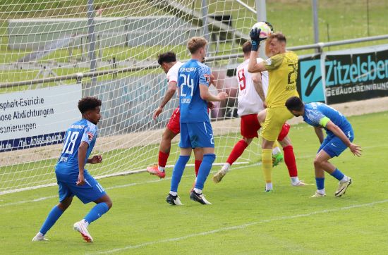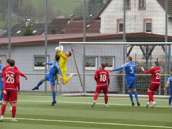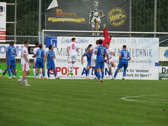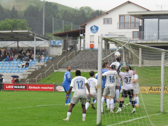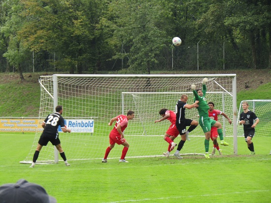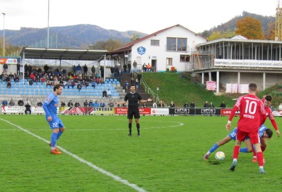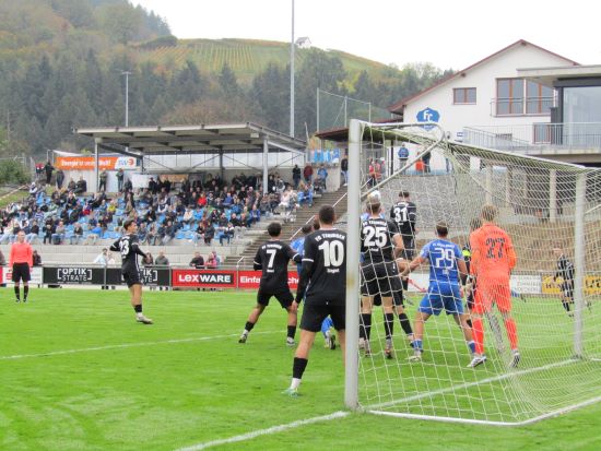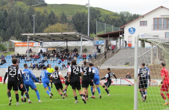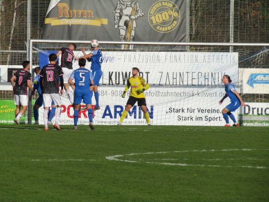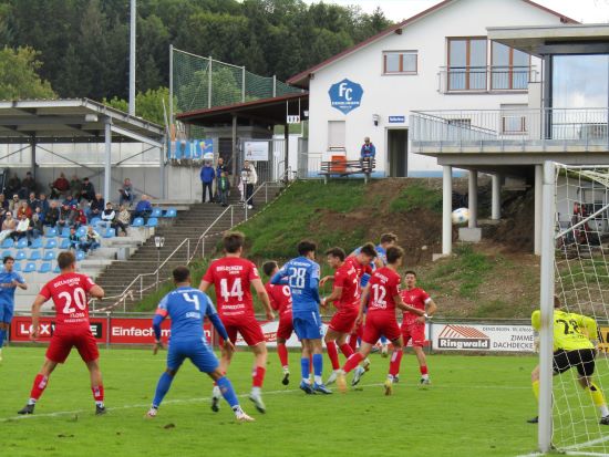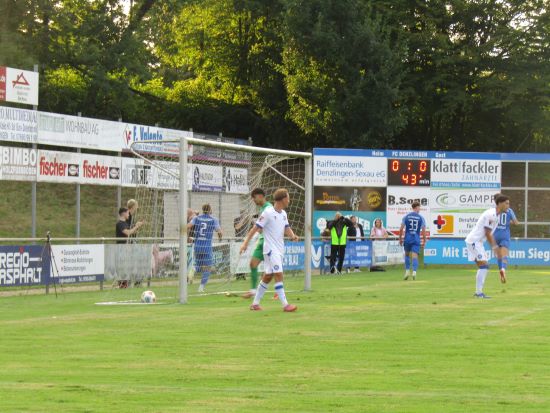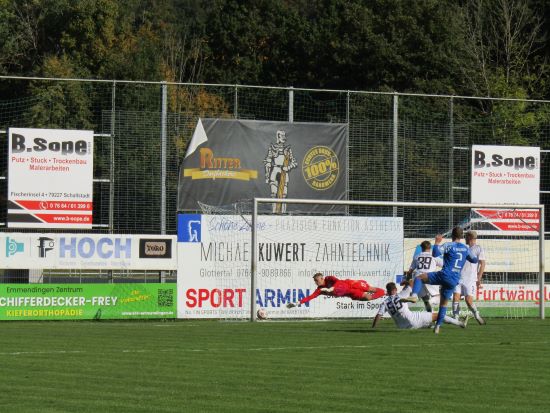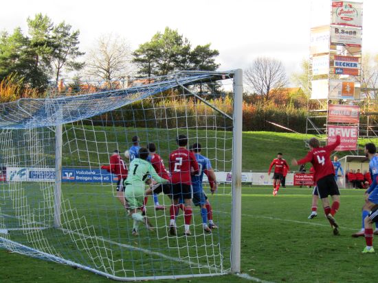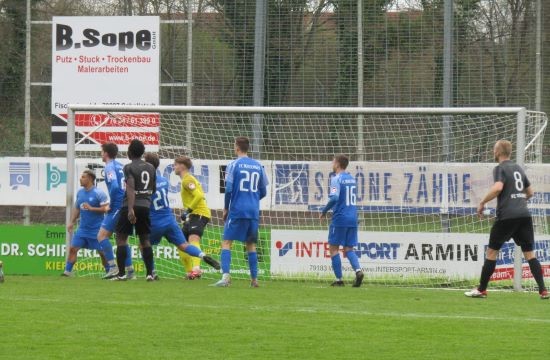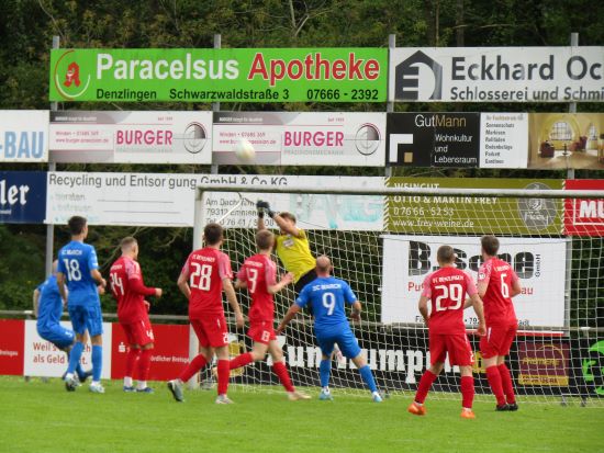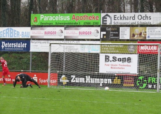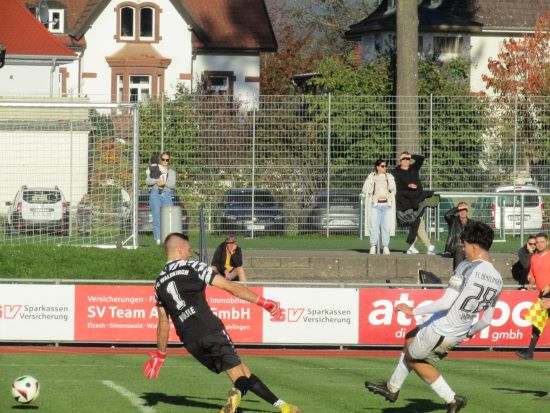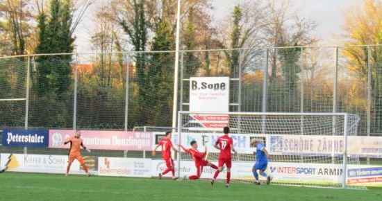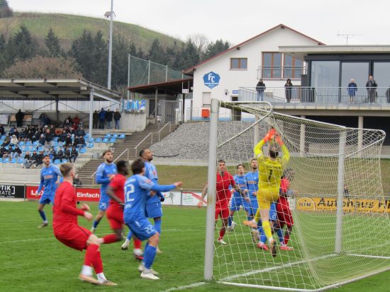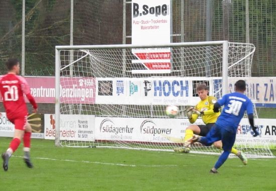 Oberliga: FCD 1 - TSV Essingen 0:1 (0:0) Die Zuschauer sahen heute einen stark aufspielenden FC Denzlingen und es war zu keiner Zeit erkennbar, welches der beiden Teams derzeit in der Spitzengruppe platziert ist und welches im Tabellenkeller rangiert. Die Heimelf vergaß es aber wieder einmal, die durchaus vorhandenen Tormöglichkeiten zu nutzen und hätte eigentlich schon vor dem Seitenwechsel mit zwei Toren Vorsprung führen können. Allerdings hatten die Gäste mit Tom Österle auch einen Meister seines Faches im Tor. Da auch die Denzlinger Defensive nichts anbrennen ließ, ging es torlos in die Pause. Die Gastgeber starteten auch in die zweite Hälfte voller Elan und erst nach fünf Minuten kamen die Gäste erstmals wieder über die Mittellinie hinaus. Schüsse von Julde Riggenmann, von Hendrik Gehring und Sandro Rautenberg fanden nicht den Weg ins Tor. In der 55. Min. legte Issa Boya nach einer Energieleistung an der Seitenlinie den Ball nach innen, Österle parierte jedoch den folgenden Kopfball von Nikita Ebel spektakulär. Von der Tribüne wurde diese Aktion mit viel Beifall bedacht. Eine tolle Faustabwehr von Österle verhinderte das weiter in der Luft liegende 1:0. Nach einer etwas verunglückten Abwehr von Heim-Torhüter Oliver Gümpel lag der Ball plötzlich im FCD-Netz, aber der Aktion ging eine Abseitsstellung voraus. So blieb es weiterhin beim 0:0. Österle konnte danach Schüsse von Gehring und Ebel, nach Flanke von Martin Butov, unschädlich machen. In der fünften Minute der Nachspielzeit bekamen die Gäste im Mittelfeld noch einen Freistoß zugesprochen und Besnik Koci hämmerte diesen zum 0:1 in die lange Ecke. In der verbleibenden Minute warf der FCD nochmal alles nach vorne, konnte aber die unverdiente Niederlage nicht mehr abwenden. So stand man am Ende wieder mit leeren Händen da. (ds) Unglaublich! Auch hier will der Ball nicht ins Netz | ||||||||||||||||||||||||||||||||||||||||||||||||||||||||||||||||||||||||||||||||||||||||||||||||||||||