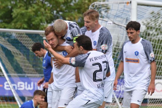 Oberliga Baden-Württemberg TSV Essingen - FCD 1 0:2 (0:0) Dem FCD gelang beim Mitaufsteiger ein vielversprechender Auftakt und mit drei Punkten im Gepäck, ließ sich die weite Rückreise von der Ostalb sicherlich leichter bewältigen. Nach ausgeglichener 1. Hälfte, in der die Heimelf mit einem Pfostenschuss Pech hatte, ging der FCD in der 52. Min. mit 0:1 in Führung. Fabian Amrhein konnte sich nach Flanke von Karl-Luis Dees im Luftduell erfolgreich durchsetzen. Der Torhüter der Gastgeber war zwar noch dran, musste sich aber letztlich geschlagen geben. In der 64. Min. war Amrhein der Vorbereiter. Sein Zuspiel nahm Issa Boye auf, umkurvte noch den TSV-Keeper und schob dann zum 0:2 ein. In der Schlussphase vergab der FCD noch eine, die Hausherren noch zwei gute Möglichkeiten zur Ergebnisveränderung, aber es blieb beim 0:2. (ds) ![]() Fabian Amrhein (links), Torschütze zum 0:1, wird von Capitän Erdem Bayram und Kameraden gefeiert ![]() Niklas Wiese gratuliert dem Torschützen zum 0:2 Issa Boye (links) | ||||||||||||||||||||||||||||||||||||||||||||||||||||||||||||||||||||||||||||||||||||||||||||||||||||||