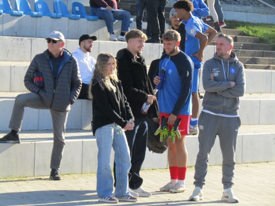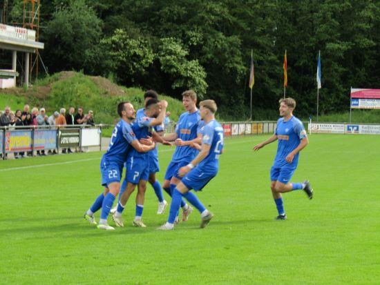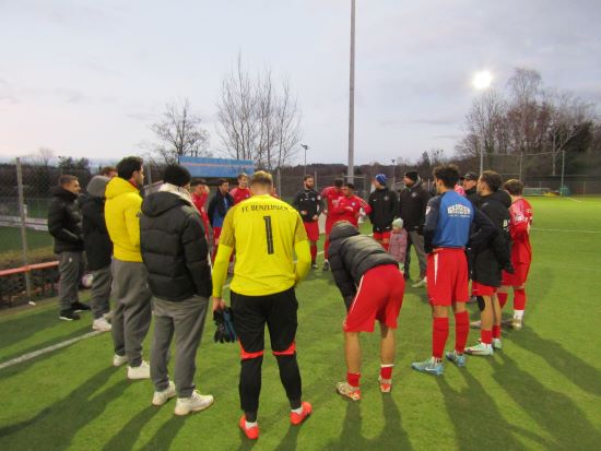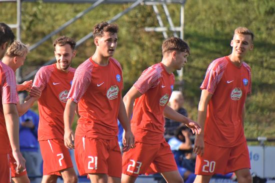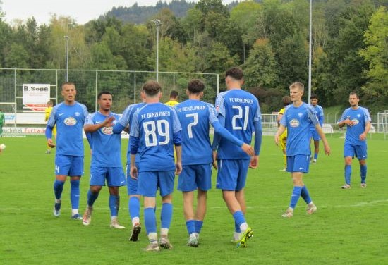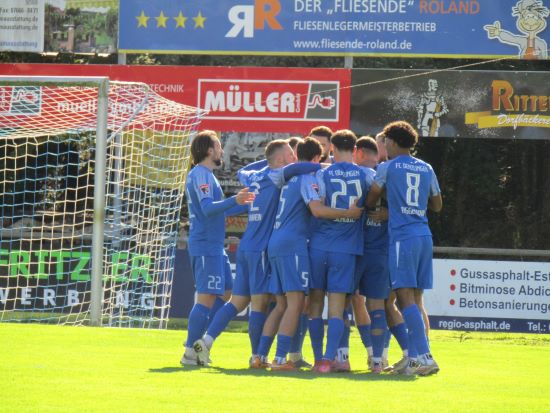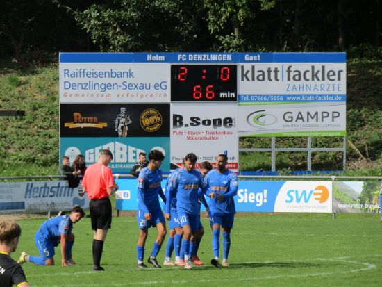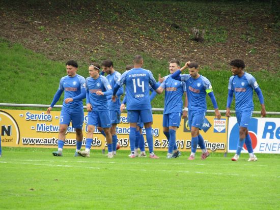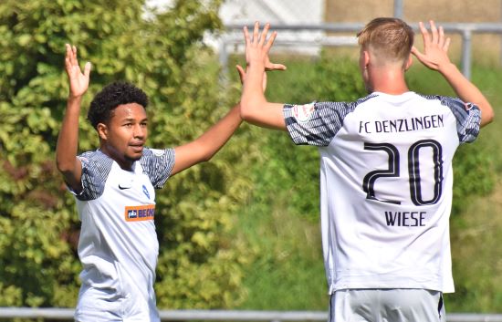 Oberliga BW TSG Backnang - FCD 1 0:3 (0:1) Wegen des frühen Spielbeginns um 14.00 Uhr musste der FCD schon zu früher Stunde die Reise in den Rems-Murr-Kreis ins 30 km nordöstlich von Stuttgart gelegene Backnang antreten. Dort begann der FCD erstmals in einem Punktespiel mit Neuzugang Santiago Fischer in der Startaufstellung. Dafür fehlte der in Herbolzheim schon nach 15 Minuten verletzt ausgeschiedene Karl-Luis Dees. Eine knappe halbe Stunde tat sich im Backnanger Etzwiesenstadion ergebnismäßig nichts, dann gelang dem FCD die 0:1 Führung. Zuvor hatten die Platzherren vergeblich einen Freistoß gefordert. Der FCD nutzte die entstandene Unruhe, startete einen Konter, den Anes Vrazalica mit einem Schuss in die linke Ecke erfolgreich abschloss. In der 37. Min. beinahe der Ausgleich, aber ein vielversprechender Schuss von Santoro landete nur am Lattenkreuz. So blieb es bis zum Seitenwechsel bei der knappen Führung für den FCD. In der 60. Min. unterlief Heimkeeper Knauß ein Foulspiel im Fünfmeterraum. Den fälligen Strafstoß verwandelte Nico Garcia Stein gewohnt sicher zum 0:2. Damit war der Torhunger des FCD jedoch noch nicht gestillt, denn 10 Minuten später erhöhte Hendrik Gehring mit seinem ersten Saisontor für die Elf von Trainer Marco Dufner auf 0:3. Gehring hatte gesehen, dass Knauß zu weit vor seinem Tor stand und er zog daher von der Mittellinie ab und die Kugel senkte sich über Knauß hinweg ins Netz. Einen ähnlichen Versuch in der 79. Min. konnte Knauß gerade noch mit den Fingerspitzen zur Ecke lenken. Das war’s dann aber und Denzlingen konnte drei wertvolle Punkte mit zurück in den Breisgau nehmen.(ds) ![]() Jubel nach dem 0:1 durch Anes Vrazalica (Nr.10). Mit ihm freuen sich v.l. T. Wiese, S. Fischer, M. Respondek, H. Gehring ![]() Nach dem 0:2 durch Nico Garcia Stein. Von links: Y. Lawson, S. Fischer, M. Respondek, der Torschütze sowie E. Bayram ![]() Nach dem 0:3 durch Kunstschuss von Hendrik Gehring. Von links: A. Vrazalica, F. Amrhein, der Torschütze, E. Bayram, Y. Lawson, S. Fischer | ||||||||||||||||||||||||||||||||||||||||||||||||||||||||||||||||||||||||||||||||||||||||||||||||||||||