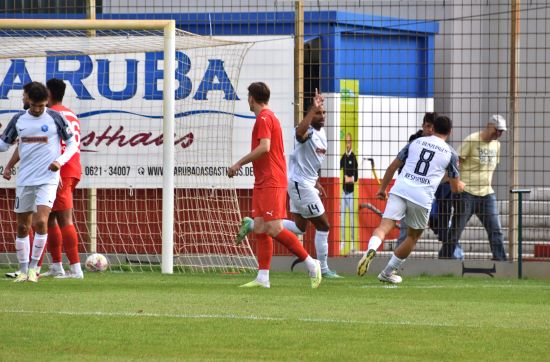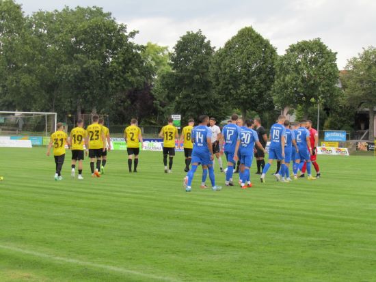 Oberliga: FCD 1 - VfR Mannheim 0:1 (0:1) Nach dem VfR Aalen bekam es der FC Denzlingen mit einem weiteren Meisterschaftsfavoriten zu tun und die Gäste vom VfR Mannheim bestätigten vor ca. 300 Zuschauern durchaus diese Einstufung. Bereits in der 5. Min. lag ihr Führungstreffer in der Luft, als Volkan Ronas Flachschuss vom Innenpfosten ins Feld zurückprallte. Die Gäste blieben weiterhin spielbestimmend, der FCD, der bei brütender Hitze viel Luftarbeit leistete, war zunächst auf Konter aus. In der 7. Min. flog dabei ein Schuss von Sandro Rautenberg übers Tor. Zwei Minuten später der nächste Vorstoß der Gastgeber, der aber ebenfalls nichts einbrachte. Auf der Gegenseite wurde in der 9. Min. ein platzierter Schuss von Lennart Thum eine Beute von FCD-Schlussmann Oliver Gümpel. In der 15. Min. war Gümpel jedoch machtlos. Nach schöner Vorarbeit von Ex-Profi Alexander Esswein sorgte VfR-Torjäger Pasqual Pander, der bereits in der Vorsaison erfolgreichster Schütze der Rasenspieler war, für das 0:1. In der 22. Min. beinahe der Ausgleich, aber der Gästetorhüter konnte einen abgefälschten Schuss gerade noch aus der Gefahrzone lenken. Gümpel verhinderte anschließend das in der Luft liegende 0:2. Glück hatten die Gäste in der 29. Min., als eine missglückte Rückgabe beinahe ins eigene Tor gerollte wäre, aber ihr zurückeilender Torhüter das Leder gerade noch einholen konnte. Der schönste Spielzug der Einheimischen bis dahin, führte leider in der 32. Min. nicht zum erfolgreichen Abschluss. So blieb es bis zum Halbzeitpfiff bei der insgesamt verdienten Gästeführung. Der FCD kam nach Wiederbeginn mit Schwung aus der Kabine und der VfR hatte Glück, das Rautenberg in der 47. Min. eine Hereingabe nur um Zentimeter verfehlte. Auch ein Torschuss von Matthis Eggert brachte nichts ein. Nach etwa einer Stunde lag jedoch die Vorent- scheidung in der Luft. Durch einen Patzer der FCD-Defensive hatten plötzlich gleich drei Gästestürmer freie Bahn, aber der aus seinem Tor herausstürzende Gümpel verhinderte das fast sichere 0:2. So nach und nach zehrte die große Hitze an den Kräften der Akteure. Der FCD war zwar weiterhin um den Ausgleich bemüht, aber die routinierten Gäste brachten die knappe Führung über die Zeit. Der FCD musste leider auf den verletzten Strategen Sebastian Weizel verzichten. Ihn sollte eigentlich Issa Boye ersetzen, der mussten dann aber kurz vor Spielbeginn ebenfalls passen. Für ihn kam Julde Riggenmann aufs Feld, der jedoch noch vor dem Halbzeitpfiff ebenfalls verletzt vom Feld musste. Kurz vor Spielschluss sah Hendrik Gehring noch Gelb-Rot und fehlt damit am nächsten Mittwoch beim Pokalspiel in Prechtal. Positives gibt es aber auch zu vermelden: Der FCD hat mit Marcel Hiller einen neuen Stadionsprecher, der seine Sache souverän erledigte und somit einen gelungenen Einstand feiern konnte. (ds) | ||||||||||||||||||||||||||||||||||||||||||||||||||||||||||||||||||||||||||||||||||||||||||||||||||||||