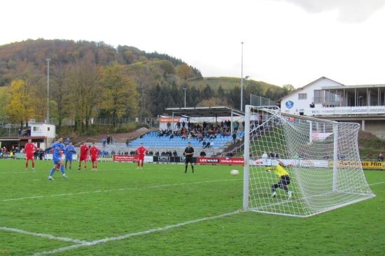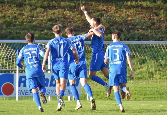 Verbandsliga: FCD 1 - SV 08 Kuppenheim 4:1 (1:1) Die Gäste aus dem Murgtal erwiesen sich als hartnäckiger Gegner und der FCD tat sich lange Zeit schwer gegen die aus einer stabilen Abwehr heraus agierenden und dabei auf schnelle Konter setzenden Gäste. Klare Tormöglichkeiten suchte man jedoch auf beiden Seiten zunächst vergeblich. So bedurfte es eines anfängerhaften Fehlers in der FCD-Defensive, der in der 35. Minute zum 0:1 durch Jonas Schlegel führte. Die Heimelf warf dies aber nicht aus der Bahn und als Anes Vrazalica in der 42. Min. nach schöner Flanke von Hendrik Gehring zur Stelle war und zum 1:1 Ausgleich einköpfte, war das Rennen wieder offen. Die Heimelf blieb danach zwar am Drücker, aber bis zum Ende der 1. Hälfte wollten keine weiteren Treffer mehr fallen. So ging es mit dem 1:1 in die Pause. Nach Wiederbeginn gleich zwei Möglichkeiten für die Gäste, die aber beide von FCD Schluss- mann Oliver Gümpel abgefangen wurden. Anschließend hatte Vrazalica das 2:1 auf dem Fuß. Sein Schuss wurde jedoch von einem Gästeakteur noch zur Ecke abgelenkt. Danach der FCD weiter im Vorwärtsgang. Eine Kopfballvorlage von Yannik Lawson in der 54. Min. konnte jedoch Vrazalica nicht verwerten. Nur zwei Minuten später der schönste Spielzug der Hausherren im heutigen Spiel. Gehring schickte dabei Alex Echner mit einem langen Ball auf die Reise und der bedankte sich mit dem 2:1. In der 64. Min. erlief sich Christian Cernenchi eine etwas zu steil geratene Vorlage noch kurz vor der Torauslinie, legte die Kugel vors Tor, wo Nikita Ebel aber Pech beim Abschluss hatte. In der 68. Min. verhinderte der gute Gästeschlussmann Maxim Wirt zweimal bravourös weitere Gegentreffer. Nach einem schnellen Vorstoß der Murgtäler in der 79. Min. standen plötzlich zwei Gästeakteure frei vor Gümpel, richteten aber letztlich keinen Schaden an. Vielmehr ging es jetzt ebenso schnell in die andere Richtung und Wirt konnte Echner den Ball gerade noch vom Fuß pflücken. In der 83. Min. musste sich Wirt jedoch geschlagen geben. Vrazalica schien sich schon in der Gästeabwehr festgelaufen zu haben, machte dann aber eine geschickte Drehung, hatte dadurch freie Schussbahn und plötzlich lag der Ball zum 3:1 im Netz. Ein sehenswerter Treffer. Die Gäste gaben sich jedoch noch nicht auf, scheiterten aber zunächst mit zwei guten Tormöglichkeiten an der Heimabwehr. Zwei Minuten später lenkte Gümpel einen gefährlichen Kopfball von Pascal Buttermilch über die Latte. Die folgende Ecke brachte nichts ein. In der Nachspielzeit bekam Denzlingen nach Vorarbeit von Matthis Eggert noch einen Foulelfmeter zugesprochen, den Echner sicher zum 4:1 Endstand verwandelte. (ds) Der Torschütze zum 2:1 Alex Echner (Nr. 11) umringt von den Kameraden nur schwer erkennbar ... ...und hier bei der Verwandlung des Strafstoßes zum4:1 | ||||||||||||||||||||||||||||||||||||||||||||||||||||||||||||||||||||||||||||||||||||||||||||||||||||||