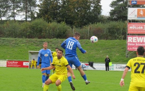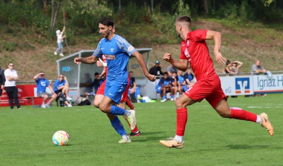 Oberliga: FCD 1 - SV Oberachern 1:2 (0:1) Das Spiel begann mit einem Schrecken für den FCD, denn bereits in der 1. Min. knallte ein Schuss von Maximilian Weiß an den Pfosten. Als Christian Cernenchi nach sechs Minuten in Nähe des Gästestrafraums von den Beinen geholt wurde, blieb der allgemein erwartete Pfiff aus. Beim Gegenzug war FCD-Torhüter Oliver Gümpel schneller als der Gästeangreifer und klärte in höchster Not per Fuß. Nach einem etwas ungeschickten Foulspiel von Mert Sebahadin Tasim im 16er zeigte SR Lindenmeier in der 18. Min. auf den Punkt. Marim Stefotic verwandelte diesen sicher zur 0:1 Gästeführung. Die Heimelf benötigte danach eine gewisse Zeit, um mal selbst wieder ein Ausrufezeichen zu setzen. Die größte Möglichkeit dazu hatte Sandro Rautenberg, aber er wurde wegen eines von ihm verursachten Foulspieles zurückgepfiffen. In der 41. Min. noch ein gefährlicher Angriff der Achertäler, aber Nathan Recht zielte weit übers Tor. So blieb es bis zur Pause bei der knappen, aber bis dahin verdienten Führung der Gäste. Die Hausherren kamen wie verwandelt aus der Kabine. Hatte vorher der SVO weitgehend den Ton angegeben, waren sie es nun selbst. Zwei Freistöße in der 47. und 48. Min. brachten jedoch nichts ein. Auch Anes Vrazalica und Rautenberg zielten zu ungenau. Rautenberg schien in der 59. Min. auf dem Wege zum Ausgleich, doch die Kugel versprang ihm, ehe er abziehen konnte. Besser lief es für ihn in der 69. Minute. Einen tollen Spielzug über links und mehrere Stationen schloss er mit dem 1:1 Ausgleich ab. Vorausgegangen war der Situation ein sagenhafter Ballgewinn von Hendrik Gehring (siehe Bild 2, Nr. 22)), der die gesamte Aktion einleitete. Nur eine Minute später ein Freistoß für den FCD, Gästetorhüter Mark Redl ließ diesen nach vorne abprallen, aber kein Einheimischer war in der Nähe. In der 78. Min. ein schneller und sehenswerter Vorstoß des FCD, aber der SRA hob seine Fahne zu früh. Das war keine Abseitsstellung. Auch in der 82. und 84. war das Glück nicht auf Seiten der Heimelf, denn die Schüsse von Gehring und Nikita Ebel sausten ganz knapp am Gästetor vorbei. Als alles auf eine Punkteteilung hinaus zu laufen schien, kamen die Gäste in der 93. Min. noch einen Freistoß an der 16-Meter-Linie zugesprochen. Beinahe alle Spieler hatten sich vor dem FCD-Tor versammelt, der Ball wurde von links nach innen gespielt, Gümpel verpasste, Demarveay Sheron war mit dem Kopf zur Stelle und der noch abgelenkte Ball trudelte zum späten Siegtreffer der Gäste ins Netz. Ein bitterer und auch nicht gerechter Ausgang für die sich weiterhin im Tabellenkeller befindlichen Gastgeber. (ds) | ||||||||||||||||||||||||||||||||||||||||||||||||||||||||||||||||||||||||||||||||||||||||||||||||||||||