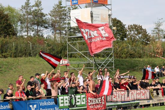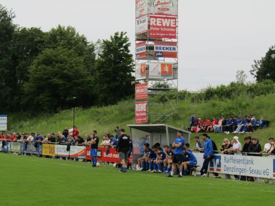 Oberliga: FCD 1 - SSV Reutlingen 1905 Fußball 0:1 (0:1) Die Gäste begannen offensiv und in der 10. Min. wurde FCD-Torhüter Jund erstmals geprüft. Sechs Muten später eine eigentlich harmlose Situation, ein Denzlinger Abwehrspieler hatte genügend Zeit, um den Ball zu Jund zurückzuspielen, er meinte jedoch seinen Gegner umspielen zu können, verlor dabei das Duell und so kamen die Gäste in Ballbesitz. Den daraus resultierenden strammen Torschuss konnte Jund nur nach vorne abwehren und Yannick Todt nutze dies, um den Ball zum 0:1 im Tor unterzubringen. Die Partie spielte sich danach hauptsächlich zwischen den Strafräum ab und erst in der Schlussphase lagen wieder Treffer in der Luft. Zunächst schob der Reutlinger Markopoulos ein Zuspiel von Vogler ganz knapp rechts unten vorbei. Gleich darauf verpassten auf der Gegenseite zwei Denzlinger am Fünfmeterraum eine scharfe Hereingabe von Rautenberg nur knapp. So blieb es bis zum Halbzeitpfiff bei der insgesamt verdienten Führung der Gäste, die über die gesamte Spielzeit von ihren zahlreichen Fans lautstark angefeuert wurden. Die zweite Hälfte begannen die Einheimischen zwar wesentlich engagierter, aber Torchancen ergaben sich vorerst nicht. In der 58. Min. ein langer Ball auf Vrazalica, der bekam aber die Kugel nicht unter Kontrolle. Beim Gegenangriff rettete Jund nach einer Ecke. Gehring brachte bei einem schnellen Vorstoß des FCD in der 69. Min. zu wenig Druck hinter den Ball. Besser machte er es in der 77. Min., als er nach einem langen Ball über die rechte Seite in den Strafraum lief, scharf vors Tor passte, wo eine Gästespieler in höchster Not aber noch vor der Torlinie klären konnte. Jund musste danach zweimal durch Faustabwehr klären, ein Schuss von Wally strich über die Latte. Dem FCD lief nun so langsam die Zeit davon, immer wieder wurde der Spielaufbau unterbrochen, weil überwiegend Gästespieler zu Boden gingen und behandelt werden mussten. So wurde es erst wieder in den Schlussminuten spannend, aber Gehring und Weizel vergaben die sich ihnen bietenden Großchancen. So nahmen die mit zwei Bussen angereisten Gäste etwas glücklich alle drei Punkte mit heim an den Fuß der Achalm. (ds) Das Verbandspokalspiel beim FC RW Salem wurde nun endgültig auf Mittwoch, den 24.09.25, 19.00 Uhr, terminiert. Knapp 500 Zuschauer waren ins Einbollenstadion gekommen Die unermüdlichen Gästefans | ||||||||||||||||||||||||||||||||||||||||||||||||||||||||||||||||||||||||||||||||||||||||||||||||||||||