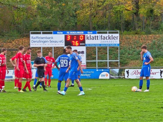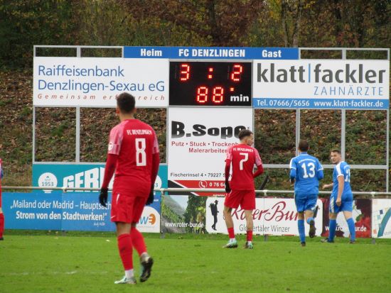 Verbandsliga: FCD 1 - Offenburger FV 4:0 (1:0) Der FCD war den Gästen, außer vielleicht gegen Spielende, in allen Belangen überlegen und so konnten diese froh sein, dass sie noch einigermaßen glimpflich davonkamen. Bereits nach drei Minuten hätte das Leder schon zweimal im OFV-Gehäuse liegen können. Zunächst lenkte OFV-Schlussmann Lion Wellnitz einen strammen Schuss von Nikita Ebel gerade noch über die Latte, dann konnte Dino Redzic ein eigentlich genaues Zuspiel in Tornähe nicht richtig aufnehmen. Auch Hendrik Gehring und Matthis Eggert scheiterten mit ihren Aktionen. In der 13. Min. endlich das längst fällige 1:0. Der nach einer FCD-Ecke und einer missglückten Abwehraktion des OFV völlig frei stehende Simon Leopold, hämmerte die Kugel zum Führungstreffer in die Maschen. Der FCD in der Folgezeit weiterhin Stammgast in der Gästehälfte und es machte Spaß zuzuschauen, wie die wesentlich beweglicheren sowie spiel- und einsatzfreudigen Hausherren, den Gegner beherrschten. Nur einmal hätte es vor dem Wechsel für den FCD gefährlich werden können, als die Gäste in der 42. Min. einen Freistoß 22 Meter vor dem Tor zugesprochen bekamen. FCD-Schlussmann Oliver Gimpel lenkte diesen jedoch über sein Tor. Die folgenden Ecke brachte nichts ein. So blieb es bis zum Halbzeitpfiff von SR Amin Hamidi, der mit beiden Teams keine Schwierigkeiten hatte, bei der knappen Denzlinger Führung. Die Gäste starteten mit einem Angriff in die zweite Hälfte, mit dem Torschuss von Ivan Kostadinov hatte Gümpel jedoch keine Probleme. Im Gegenzug rutschte ein Schuss von Eggert unter dem Gästetorhüter hindurch zum erlösenden 2:0 ins Netz. Nun war der FCD nicht mehr zu bremsen und innerhalb der folgenden fünf Minuten erhöhten Ebel und Redzic auf 4:0. In der 70. Min. beinahe das 5:0, aber die Gäste retteten noch zur Ecke. Nun ließ es der FCD in Angesicht des sicheren Sieges, etwas gemächlicher angehen und wäre beinahe dafür bestraft worden, aber Kostadinov vergab etwas kläglich eine sehr gute Tormöglichkeit. Er wurde dafür von einem OFV-Anhänger auf der Tribüne heftig beschimpft. So tut man seiner im Abstiegskampf steckenden Mannschaft, wohl keinen Gefallen. Ein toller Lauf in der 81. Min. von Eggert aus der eigenen Hälfte über links in den Gästestrafraum, hätte ein Tor verdient gehabt, aber der Schuss strich ganz knapp an der langen Torecke vorbei. So blieb es beim hochverdienten 4:0. (ds) Der Führungstreffer. Gästetorhüter Wellnitz hat den Ball zwar in der Hand, aber es war klar erkenntlich, dass der Ball die Torlinie vorher schon überschritten hatte. Sie haben ihren Job erfolgreich beendet, das SR-Gespann aus Mittelbaden | ||||||||||||||||||||||||||||||||||||||||||||||||||||||||||||||||||||||||||||||||||||||||||||||||||||||