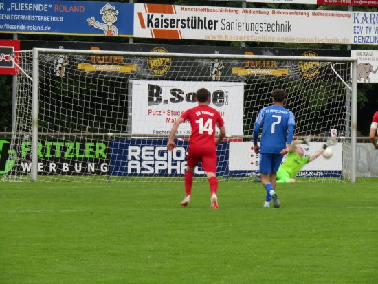 Oberliga: Türk.SV Singen - FCD 1 2:2 (1:0) Beim Mitaufsteiger vom Hohentwiehl geriet der FCD bereits in der 12. Min. durch ein Tor von Ege Öztürk mit 1:0 in Rückstand. Dabei blieb es bis zum Seitenwechsel. Als in der 52. Min. Dominik Emminger wegen zweimaligen Foulspiels mit Gelb/Rot vom Platz musste und Nicolas Garcia Stein ca. 20 Min. später einen Strafstoß zum 1:1 Ausgleich verwandelte, schien sich das Blatt zu Gunsten der Gäste zu wenden. Umso bitterer die erneute Führung der Platzherren in der 81. Minute. In der dritten Minute der achtminütigen Nachspielzeit konnten sich die Gäste dann doch noch für ihren Einsatz belohnen, denn Sebastian Weizel gelang der gefeierte 2:2 Ausgleich. So wanderte wenigstens ein Punkt Richtung Breisgau. Die Gastgeber blieben dadurch in der Tabelle weiterhin hinter dem FCD. (ds) Bezirksliga: FCD 2 - TV Köndringen 1 0:3 (0:3) Die Bezirksligaelf des FCD hatte zum Saisonauftakt ihren Angstgegner TV Köndrigen im Einbollenstadion zu Gast. Besonders in der ersten Hälfte ging bei der Heimelf nicht viel zusammen, während der TVK immer wieder gefährlich im Denzlinger Strafraum auftauchte. Nach mehreren Eckbällen für die Gäste, der erste gefährliche Torschuss der Heimelf in der 13. Minute. Kurz darauf jedoch die Führung für Köndringen durch Marco Eble. Nur zwei Minuten später erhöhte Semjon Kern auf 0:2, ehe Eble zum zweiten Male traf und für den 0:3 Halbzeitstand sorgte. In der zweiten Hälfte kamen die erstgeschwächten Platzherren wesentlich besser zur Geltung und wenigstens eine Ergebniskorrektur lag in der Luft. Die beste Gelegenheit dazu hatte Tim Lettgen, der mit einem Strafstoß jedoch am Gästekeeper Lewandowski scheiterte (Siehe Bild). Auch danach hatten die Hausherren noch Möglichkeiten wenigstens zum Ehrentreffer. Auf der Gegenseite verhinderte FCD-Schlussmann Mehmet Demirdögen mehrmals das 0:4. So blieb es bis zum Schluss beim 0:3. (ds) Kreisliga B7: FCD 3 - TV Köndringen 2 2:4 (2:3) Auch die 3. Mannschaft verlor ihr Auftaktspiel gegen die Köndringer Reserve mit 2:4 (2:3) und gab dabei eine 2:0 Führung aus der Hand. Die Tore für die Heimelf beruhten auf einem Eigentor der Gäste in der 4. Min. und einem Treffer von Luca Schäffauer in der 16. Minute zum 2:0. (ds) | ||||||||||||||||||||||||||||||||||||||||||||||||||||||||||||||||||||||||||||||||||||||||||||||||||||||