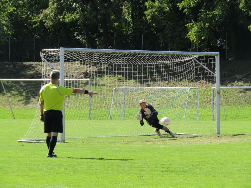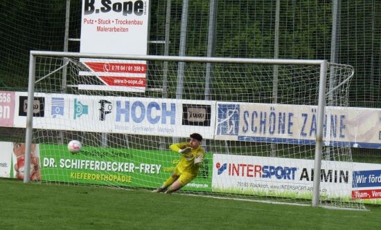 Kreisliga A1 FCD 2 - SG Weisweil/Forcheim 1 6:0 (5:0) Gegen die Mannschaft von Ex-Trainer Stefan Kreuz, der in Denzlingen immer ein gern gesehener Gast ist, konnte die 2. Mannschaft des FCD einen, insbesondere in dieser Höhe, kaum erwarteten Erfolg einfahren, hatten sich die Gäste in den letzten Jahren doch immer als ein unbequemer Gegner erwiesen. So spricht z.B. die Bilanz aus den vorausgegangenen fünf Begegnungen eindeutig für das Team aus dem nördlichen Kreisgebiet, denn für den FCD steht da nur ein einziger mickriger Punkt auf der Habenseite. Heute war aber für die Heimelf die Partie bereits zur Halbzeit so gut wie entschieden, denn durch Tore von Michael Weimer (22. Minute), Yan Slipchenko (30.), Eric Lickert (36.) sowie David Purrmann und Tim Lettgen in der Nachspielzeit, lag die Heimelf bereits da klar mit 5:0 in Führung. Nach Wiederbeginn schraubte Tim Lettgen in der 56. Min. das Ergebnis auf 6:0. In der 78. Min. hatten die Gäste die große Möglichkeit das Ergebnis für sie etwas freundlicher zu gestalten, denn nach einem Foul im Strafraum zeigte SR Dennis Häringer auf den Elfmeterpunkt. Aber FCD-Schlussmann Marvin Mettberger blieb im Duell mit dem Weisweiler Lukas Pinkhardt Sieger. So blieb es bis zum Schlusspfiff beim 6:0 Erfolg für die Hausherren. Durch diesen Sieg überholte der FCD nicht nur die Gäste in der Tabelle, sondern hat sich jetzt sogar bis zum 3. Tabellenplatz hochgearbeitet. (ds) Kreisliga B5 FCD 3 - SG Weisweil/Forcheim 2 5:4 (2:0) Spannend machte es die 3. Mannschaft des FCD. Durch Tore von Jakob Saier und Robin Vozar (2x) lag sie bis kurz nach der Halbzeit bereits mit 3:0 in Führung und schien auf einen sicheren Sieg zuzusteuern. Durch vier Treffer zwischen der 57. und 82. Min. drehten die Gäste jedoch die Partie zu ihren Gunsten. Im Schlussspurt hatten dann aber doch die Platzherren die Nase vorne. Zunächst gelang Jakob Saier mit seinem zweiten Treffer in der 85. Min. der Ausgleich und drei Minuten später verwandelte Paul Dettmar einen Strafstoß zum umjubelten 5:4 Sieg. (ds) ![]() Torhüter Marvin Mettenberger fliegt beim 11m in die richtige Ecke