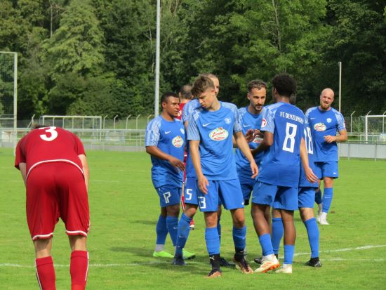 Oberliga BW FCD 1 - SSV Reutlingen 1905 Fußball 4:1 (1:0)Mit einer disziplinierten Mannschaftsleistung kam der FCD vor toller Kulisse verdient zu seinem ersten Heimerfolg. Die Heimelf riss schon bald die Initiative an sich und hatte schon in den ersten zehn Minuten drei gute Tormöglichkeiten. Erst in der 11. Min. der erste Torschuss der Gäste. Im Gegenzug konnte ein Schuss von Hendrik Gehring nach Pass von Anes Vrazalica gerade noch geblockt werden. In der 17. Min. war wieder der SSV an der Reihe, aber Roman Kasiar kam mit dem Kopf etwas zu spät. Der FCD bestimmte jedoch weiter das Geschehen und die Führung wäre nicht unverdient gewesen. So dauerte es bis zur 27. Min. ehe endlich der Bann gebrochen war. Nach einer Flanke von Erich Sautner nutzte Matthis Eggert seine Körpergröße und brachte das Leder per Kopf zum umjubelten 1:0 über die Linie. Gegen Ende der ersten Hälfte konnten sich die Gäste wieder etwas befreien, aber es blieb bis zum Halbzeitpfiff bei der knappen Führung der Heimelf. Gerade als sich die Gäste nach Wiederbeginn ein leichtes Übergewicht erarbeitet hatten, fiel das 2:0. Einen herrlichen Spielzug über Sautner schloss Vrazalica in der 53. Min. mit dem 2:0 ab. Beinahe wäre danach den Gästen der Anschlusstreffer gelungen, aber ihr Kopfball flog zum Glück für den FCD übers Tor. In der 63. Min. spurtete Vrazalica in ein Zuspiel von Alex Echner und traf mit einem präzisen Flachschuss zum 3:0 in die lange Ecke. Kaum war der Denzlinger Torjubel verhallt, lag der Ball zum 4:0 im Netz. Nach einem gelungenen Spielzug über mehrere Stationen traf Fabian Amrhein mit einem sensationellen Abschuss ins Schwarze. Das 4:1 in der 74. Min. durch Marvin Jäger, der einen zunächst abgewehrten Ball von der Strafraumgrenze volley in die Maschen jagte, warf den FCD nicht mehr aus der Bahn. So endete die faire Begegnung, bei der der souverän leitenden SR Lukas Lindenmeier gänzlich ohne gelbe Karten auskam, im fünften Versuch mit den ersehnten ersten Heimpunkten für den FCD. Noch ein Wort zum Reutlinger Anhang, der sehr diszipliniert auftrat und fast über die gesamte Spielzeit den SSV zwar lautstark aber jederzeit sportlich fair anfeuerte. Respekt! (ds) | ||||||||||||||||||||||||||||||||||||||||||||||||||||||||||||||||||||||||||||||||||||||||||||||||||||||