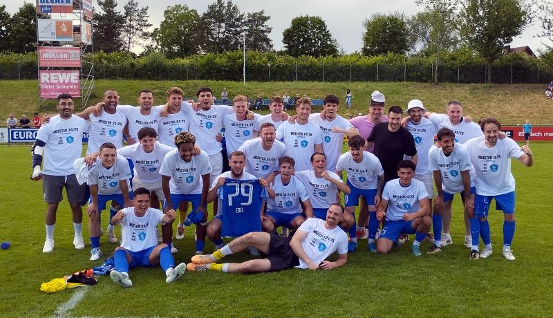 Verbandsliga: FCD 1 - SV Bühlertal 4:0 (1:0) Der FCD, von vielen Experten schon vor Wochen als der sichere Meister proklamiert, machte es im Ligaendspurt durch Niederlagen beim TürkSV Singen und beim Freiburger FC nochmals spannend und so war heute bei großer Hitze ein Sieg gegen den abstiegsgefährdeten SV Bühlertal erforderlich, um das große Ziel, Meisterschaft und Oberligaaufstieg, doch noch zu erreichen. Vor der größten Kulisse in dieser Saison, wohl über 600 Zuschauer hatten den Weg ins Einbolllenstadion gefunden, um die Entscheidung direkt vor Ort mitzuerleben. Die Gastgeber begannen verhalten und so waren es die Gäste, die die ersten zwei Torschüsse abgaben, die aber beide weit übers Tor segelten. Die erste gute Gelegenheit auf der Gegenseite hatte in der 10. Min. Anes Vrazalica, der im großen Strafraum einen weiten Ball zwar zunächst gekonnt annahm, anschließend aber mit dem Abschluss Schwierigkeiten hatte. Eine schöne Flanke von Matthis Eggert zwei Minuten später fand leider keinen Abnehmer. Eine kuriose Szene in der 17. Min. als der Ball plötzlich im leeren Gästetor lag, aber nach einem Signal seines Assistenten entschied SR Jürgen Schätzle, der ansonsten mit dem Spiel keine Schwierigkeiten hatte, auf Abseits. Kurz nachdem der Bühlertäler Jonas Knobelspies eine gute Torchance ausgelassen hatte, verhinderte auf der anderen Seite sein Torhüter Niklas Cholewa mit einer tollen Reaktion, nach einem Weitschuss unter die Latte von Nikita Ebel, das mögliche 1:0. In der 34. Min. war dann Ebel aber erfolgreicher, als er einen zunächst abgewehrten Ball aus ca. 20 Metern zum 1:0 in die Maschen setzte. Kurz vor dem Halbzeitpfiff hätte Ebel nachlegen können, aber er verpasste einen Pass in die Tiefe von Eggert um Zentimeter. So blieb es bis zum Halbzeitpfiff bei der knappen 1:0 Führung des FCD. Bei weiterhin großer Hitze riss der FCD in der 2. Hälfte das Geschehen weitgehend an sich. Das Spiel, nur unterbrochen von ein paar wenigen Kontern der Mittelbadener, spielte sich überwiegend in deren Hälfte ab. Der starke Cholewa verhinderte in der 48. Min., nach einer tollen Kombination der Platzherren, mit Mühe das 2:0. Für das zeichnete dann aber Ebel in der 55. Min. mit seinem zweiten Treffer verantwortlich. Vier Min. später das schönste Tor des Tages. Hendrik Gehring zog aus dem Mittelfeld ab und sein Schuss sauste wie von der Schnur gezogen, unhaltbar zum 3:0 ins Netz. In der 63. Min wäre Ebel beinahe sein dritter Treffer gelungen, sein Schuss aus spitzen Winkel rutschte jedoch vom Pfosten ins Aus. Auch Vrazalica stand bei seinem Schuss nach schöner Flanke von Eggert, in der 75. Min. der rechte Torpfosten im Wege. Für den Schlusspunkt sorgte in der 83. Min. Alex Echner, der nach einem Foul von Cholewa an Vrazalica, den fälligen Strafstoß sicher zum 4:0 verwandelte. SR Schätzle pfiff sieben Minuten später pünktlich ab und nun war die Meistermannschaft nicht mehr zu halten. Großer Jubel bei den Akteuren und Beifall von den Rängen war das Startsignal zu der anschließenden langen Siegesfeier. (ds) Vor dem Anpfiff Szene vor dem FCD Tor Szene vor dem Gästetor Nikita Ebel bejubelt einen seiner zwei Treffer Schattenplätze waren heiß begehrt ![]() Der Vorsitzende des Verbandsspielausschusses Arno Kiechle bei der Übergabe von Meisterschaftsurkunde und -wimpel an FCD-Kapitän Nicolas Garcia Stein ![]() So sehen Meister aus (zum Vergrößern auf das Bild klicken) Bildquelle: Martin Ullrich, Wochenzeitungen am Oberrhein Verlags-GmbH Ergebnisse von den Sonntagssspielen: FC Bad Krozingen 1 - FCD 2 1:1 (1;0) - Die Gastgeber, die weiter in Abstiegsgefahr schweben, gingen in der 12. Min. in Führung. für den Ausgleich sorgte in der 68. Min. Andreas Hilzinger FC Bad Krozingen 2 - FCD 3 4:2 (3:1) - Die Tore für den FCD erzielte Ilja Lemminger in der 18. (zum 2:1) und in der 88. Min (zum 4:2). | ||||||||||||||||||||||||||||||||||||||||||||||||||||||||||||||||||||||||||||||||||||||||||||||||||||||