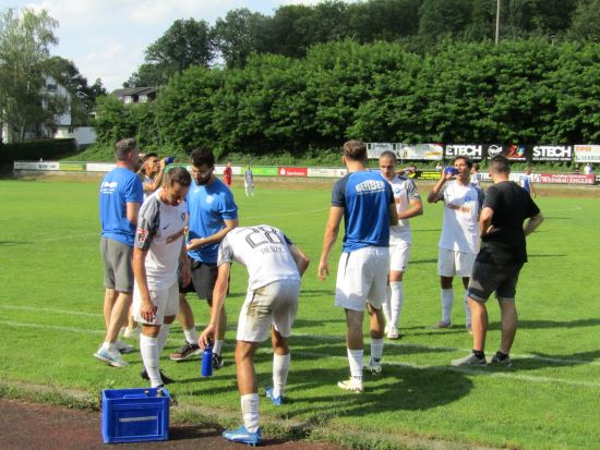 Verbandspokal SpVgg Gundelfingen/Wildtal - FCD 1 0:7 (0:5) Der FCD ließ gleich von Anfang klar erkennen, dass er heute als Sieger vom Platz gehen wollte. Durch Tore von Martin Butov (5. Min.), Alex Echner (12.), Karl-Luis Dees (13.), Fabian Amrhein (15.) und einen verwandelten Strafstoß von Nico Garcia Stein in der Nachspielzeit war das Spiel zur Halbzeit bereits so gut wie entschieden. In der 2. Hälfte ließ es der FCD dann etwas ruhiger angehen, trotzdem schraubten Echner (79.) und Nikita Ebel (87.) das Ergebnis noch auf 0:7. In der 2. Hauptrunde trifft der FCD nun am Mittwoch, den 21.08.24 um 18.00 Uhr im Einbollenstadion auf den TuS Binzen, der seinen heutigen Konkurrenten FC 08 Tiengen ähnlich souverän mit 5:1 abblitzen ließ. (ds) Der Trinkbedarf war groß | ||||||||||||||||||||||||||||||||||||||||||||||||||||||||||||||||||||||||||||||||||||||||||||||||||||||