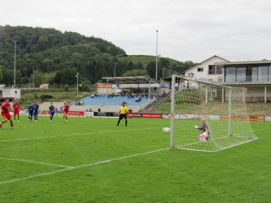 Verbandspokal FCD 1 - Bahlinger SC 1 1:3 (0:2) Die Partie begann mit einer Gedenkminute für Horst Gerber, dem am 16.09. überraschend verstorbenen Ehrenmitglied und großen Gönner des FC Denzlingen. Nach dem ersten Abtasten, in der 15. Minute gleich eine Hiobsbotschaft für die Gastgeber, ihr Flügelflitzer Theo Ahile lag plötzlich auf dem Boden und bald zeigte sich, dass er nicht mehr weitermachen konnte. War das Spiel bis dahin weitgehend ausgeglichen, erspielten sich nun die Gäste nach und nach eine Überlegenheit, ohne jedoch torgefährlich zu werden. Das änderte sich in der 28. Minute. Nach einem Denzlinger Ballverlust kam Ali Ibrahim in Ballbesitz, drang in den Strafraum ein und schoss flach am machtlosen FCD-Schlussmann Dustin Jund vorbei zum 0:1 ein. Das war die erste richtige Torchance für die Kaiserstühler. Auf der anderen Seite blieb in der 30. Min. ein Denzlinger Konter über Alex Echner in der BSC-Abwehr hängen, auch eine Ecke eine Minute später brachte nichts ein. Besser machten es die Gäste in der 34. Minute. Fabio Kinast setzte sich an der Torauslinie durch, seine scharfe Hereingabe streifte noch Simon Leopold und ging dann zum 0:2 ins Tor. Eigentlich war das Tor ein Verdienst von Kinast, aber im Spielbericht wurde es als Eigentor gewertet. Der FCD antwortete mit einem schnellen Gegenangriff über Issa Boye zu Matthis Eggert, aber dessen Schuss wurde eine Beute von BSC-Keeper Benedikt Grawe. In der Nachspielzeit nochmals eine gute Gelegenheit für die Einheimischen. Aber Grawe konnte den Aufsetzer von Echner gerade noch mit einer Hand über die Latte lenken. Dann war Pause. Die 2. Hälfte begann mit einer Ecke für den BSC, die aber von Jund sicher abgefangen wurde. Ein schneller Gegenzug des FCD brachte ebenfalls nichts ein, auch weil Echner auf dem holprigen Boden beim Torschuss der Ball versprang. In der 51. und 53. Min. machte Jund zwei gute Möglichkeiten von Nico Gutjahr und Shqipon Bektasi unschädlich. In der 56. Min. wurde Boye unfair gestoppt, der fällige Freistoß, ausgeführt von Echner, wurde zunächst geblockt, aber Echner kam nochmals an den Ball und setzte diesen flach rechts unten zum 1:2 Anschlusstreffer ins Netz. Der Treffer zeigte Wirkung bei den Gästen und der FCD hatte danach durchaus Gelegenheiten zum Ausgleich. Die größte davon in der 66. Min. durch Fabian Amrhein, aber ein Bahlinger Abwehrspieler konnte kurz vor der Linie noch klären, Grawe hätte hier das Nachsehen gehabt. Die Gäste zogen nun die Zügel wieder an und Jund war gleich mehrmals gefragt, er behielt aber jeweils die Oberhand. Geschlagen musste er sich jedoch in der 83. Min. geben Da unterlief einem Denzlinger Abwehrspieler im Strafraum ein unglückliches Handspiel und Luca Köbele verwandelte den fälligen Strafstoß zum vorentscheidenden 1:3. Zwei Minuten später prüfte Nikita Ebel BSC-Torhüter Grave, der mit einer Glanztat den erneuten Anschlusstreffer verhinderte. Danach war das Rennen gelaufen. Der FCD hat sich aber mehr als achtbar aus der Affäre gezogen und durfte sich über einen guten Besuch freuen. Nach Meinung der Experten auf der Tribüne sahen gut 1100 Zuschauer diese Begegnung. (ds) | ||||||||||||||||||||||||||||||||||||||||||||||||||||||||||||||||||||||||||||||||||||||||||||||||||||||