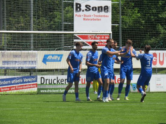 Verbandsliga: FCD 1 - SC Pfullendorf 4:0 (2:0) Die Platzherren hatten die zuletzt sehr erfolgreichen Gäste über weite Strecken immer gut im Griff und gingen letztlich als verdienter Sieger vom Platz. Schon in der 4. Min. lag der Ball erstmals im Gästenetz. Der links durchgebrochene Anes Vrazalica wurde im Strafraum durch ein eigentlich überflüssiges Foul von den Beinen geholt, die Elfmeterentscheidung war aber vollauf gerechtfertigt. Nicolas Garcia Stein verwandelte den Strafstoß gewohnt sicher zum 1:0. Die beste Szene bis dahin, hatten die Linzgauer in der 13. Min. zu verzeichnen. Der schnelle Vladimir Biller spurtete auf der rechten Seite Richtung Eckfahne, schoss dann aber bedrängt übers Tor. Zwei Minuten später hatte Nikita Ebel das 2:0 auf dem Fuß. Sein Schuss aus kurzer Distanz ging jedoch vom Außenpfosten ins Toraus. Nach einem schönen Angriff der Heimelf über mehrere Stationen landete der Ball in der 18. Min. bei Alex Echner und der schoss den Ball aus Nähe der Seitenlinie oben rechts zum 2:0 in die lange Torecke. Das 3:0 vergab Matthis Eggert in der 22. Minute. Nach einem gewonnen Zweikampf zielte er übers Tor. Sechs Minuten später waren mal wieder die Gäste am Zuge, aber FCD-Torhüter Oliver Gümpel lenkte mit einer sehenswerten Parade einen platzierten Schuss ins Toraus. In der 32. und 44. Min. konnte sich Gümpel erneut auszeichnen und sein Tor rein halten. So blieb es bis zum Halbzeitpfiff beim 2:0. In den ersten Minuten der zweiten Hälfte tat sich zunächst auf beiden Seiten wenig. Erst in der 57. Min. wieder eine erwähnenswerte Szene. Einen Kopfball von Ebel konnte SCP-Torhüter Nino Trost nur mit Mühe ins Toraus lenken. Der fällige Eckball landete bei Garcia Stein und der hämmerte das Leder durch Freund und Feind hindurch zum 3:0 ins Netz. In der 75. Min. etwas überraschend das 4:0. Eggert sah, dass der Gästetorhüter sein Tor verlassen hatte und zog aus ca. 40 Metern einfach mal ab und plötzlich lag der Ball im Tor. In den Schlussminuten hatten die Gäste noch zwei gute Möglichkeiten zur Ergebnisverbesserung, zunächst klärte ein FCD-Akteur auf der Torlinie und gleich darauf musste Gümpel sein ganzes Können aufbieten, um einen Einschlag zu verhindern. Dazwischen war auch Trost bei einem platzierten Schuss von Dino Redzic gefragt. Aber am 4:0 änderte sich bis zm Schluss nichts mehr. Da der schärfste Verfolger des FCD, der TürkSV Singen, sein Spiel bei den SF Elzach-Yach gewinnen konnte, musste die Entscheidung über die Meisterschaft mindestens bis zum nächsten Spieltag vertagt werden. (ds) ![]() Gleich liegt der Ball zum 1:0 im Netz ![]() Und noch ein Tor B1 Meister in der Bezirksliga Eine Meisterschaft konnte in Denzlingen trotzdem gefeiert werden. Durch die Schützenhilfe der SG Markgräflerland, die ihr Spiel gegen den schärfsten Verfolger des FCD, die 2. Mannschaft des PTSV Freiburg, mit 3:2 gewann, wurde unsere B1 nicht nur Meister sondern auch Aufsteiger in die Landesliga. Unsere B1 gewann ihrerseits gegen den ESV Freiburg mit 3:1. Hierzu herzliche Glückwünsche und viel Erfolg in der neuen Liga. (ds) | ||||||||||||||||||||||||||||||||||||||||||||||||||||||||||||||||||||||||||||||||||||||||||||||||||||||