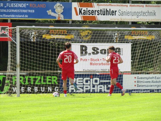 Oberliga BW FCD 1 - FV Ravensburg 3:2 (1:1) Der FCD versuchte gleich von Anfang an Druck auszuüben, aber auch die Gäste bevorzugten die offensive Variante. Die Heimelf, die zunächst vorrangig über die rechte Seite operierte, hatte gleich zwei gute Möglichkeiten durch Santiago Fischer, die Oberschwaben eine durch Ivo Colic. In der 11. Min. wieder ein Angriff über rechts der Einheimischen, Niklas Wiese legte zu Fischer, der verlor den Ball zwar zunächst, ergatterte sich ihn aber wieder und schob ihn dann neben dem Innenpfosten zum 1:0 ins Tor. In der 20. Min. schien nach einer Ecke das 2:0 fällig, aber ein Abwehrspieler der Gäste rettete noch per Kopf auf der Linie. Im Gegenzug unverhofft der 1:1 Ausgleich. Mit einem strammen Fernschuss konnte Colic FCD-Torhüter Bergmann, der sonst ein sehr sicherer Rückhalt war, überraschen. Beide Teams, insbesondere die Heimelf, waren danach um die Führung bemüht, aber bis zum Halbzeitpfiff blieb es beim 1:1. Zu diesem Zeitpunkt waren schon dunkle Wolken am Himmel aufgezogen und kaum waren die Mannschaften in ihren Kabinen verschwunden, ging es auch mit starken Regengüssen, begleitet von Blitzen und Donner, los. So war es sehr vernünftig von SR Max Angenendt die ursprüngliche fünfzehnminütige Pause auf ca. 45. Minuten zu verlängern. Der Wiederbeginn war nach der langen Pause für beide Teams nicht gerade leicht. Die Gäste kamen mit der Situation etwas besser zurecht, aber die Hausherren hielten gut dagegen. Schrecksekunde bei ihnen in der 53. Min., als Nico Garcia Stein nach einem Duell verletzt am Boden liegen blieb. Lange sah es so aus, als ob es für ihn nicht mehr weitergehen würde. Aber nach längerer Behandlungspause und Gehversuchen hinter der Seitenlinie, meldete er sich eigentlich unerwartet wieder zurück und hielt dann, sicherlich begleitet von großen Schmerzen, bis zum Schlusspfiff durch. Respekt! In der 67. Min. kam für Wiese Alex Echner aufs Feld und der hätte nur eine Minuten später gleich für einen Einstand nach Maß sorgen können. Aber sein Schuss ging aus guter Position am Tor, das Gästeschlussmann Ramon Castellucci bereits verlassen hatte, vorbei. Aber in der 79. Min. dann doch Jubel beim FCD-Anhang. Erdem Bayram, der auch sonst eine starke Partie ablieferte, versenkte einen Freistoß aus ca. 25 Metern zum 2:1 im Netz. Castellucci hechtete vergebens. Aber wieder dauerte die Freude über die Führung nicht lange, denn erneut war es Colic, dem mit einem weiteren Distanzschuss das 2.2 gelang. In der turbulenten Schlussphase verhinderte kurz vor dem regulären Ende Bergmann das mögliche 2:3. In der ersten Minute der fünfminütigen Nachspielzeit ging der FCD, begleitet vom großen Jubel seiner Anhänger, zum dritten Male in Führung. Nach Vorarbeit von Bayram hämmert der eingewechselte Karl-Luis Dees mit einem Volleyschuss die Kugel zum 3:2 Siegtreffer ins Gästetor. Der FCD konnte sich durch diesen Sieg um einen Rang verbessern und darf weiterhin auf den Klassenerhalt hoffen. (ds) Das eigentlich für Sonntag, 19.05. vorgesehene Spiel unsere 2. Mannschaft bei der SG Solvey Frb/Umkirch wurde von der Heimelf abgesagt. Wie zu hören war, wegen Spielermangel. --- Die 3. Mannschaft gewann ihr Spiel bei der Dritten der Spvgg Gundelfingen/Wildtal mit 0:6. ![]() Torjubel nach Freistoßtor zum 2:1 durch Erdem Bayram ![]() Ball liegt im Netz zum 3:2 Siegtreffer durch Karl-Luis Dees | ||||||||||||||||||||||||||||||||||||||||||||||||||||||||||||||||||||||||||||||||||||||||||||||||||||||