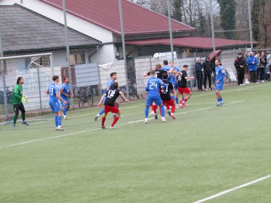 Bezirksliga: FCD 2 - SF Oberried 1 3:2 (2:2) In einer spannenden und bis zum Schlusspfiff hart umkämpften Begegnung gelang den Platzherren die Revanche für die in der Hinrunde erlittene 2:0 Niederlage. Auf dem Denzlinger Kunstrasen gingen die Gäste bereits in der 7. Min. mit 0:1 in Führung. Nach einer Ecke konnte Michael Müller ungehindert einköpfen (siehe Bild). Aber schon drei Minuten später zog Tim Lettgen aus 17 Metern ab und sein Schuss landete rechts unten zum 1:1 im Netz. Nach einem weiteren Eckball in der 15. Min. ließen die Hausherren mit Robin Steiert, einen weiteren Gästespieler am linken Pfosten unbeschattet und der hatte keine Mühe die Kugel zum 1:2 im Netz zu versenken. In der 22. Min. beinahe das 1:3, aber Kilian Matz verpasste eine Hereingabe von rechts nur ganz knapp. Ein Kopfball von Tim Lettgen verfehlte in der 32. Min. ebenfalls knapp sein Ziel. Sechs Minuten später durften die Hausherren dann aber doch noch jubeln. Eine Diagonalflanke von Jan Becker erreichte auf der rechten Seite David Purrmann und mit einer Direktabnahme hämmerte dieser die Kugel zum 2:2 ins Netz. Dabei blieb es bis zum Halbzeitpfiff. Kaum war wieder angespielt, tauchte die Heimelf im Gästestrafraum auf und einen schönen Spielzug schloss Niclas Haller mit dem 3:2 ab. Denzlingen ließ danach, auch dank von zwei Glanztaten von FCD-Torhüter Dustin Jund, nichts mehr anbrennen und überstand auch die reichlich bemessene Nachspielzeit unbeschadet. So schlossen die Platzherren das Jahr 2024 auf dem zu Saisonbeginn kaum erwarteten 4. Tabellenplatz ab, punktgleich mit dem heutigen Gegner aber mit dem besseren Torverhältnis. (ds) Kreisliga B7: FCD 3 - SF Oberried 2 3:4 (2:1) Bis zur 80. Min. lag die Heimelf durch drei Treffer von Robin Vozar und einem Gästetreffer noch mit 3:1 vorne. Aber durch drei Tore, darunter ein sehr umstrittener Strafstoß, konnte Oberried die Partie noch für sich entscheiden. (ds) ![]() | ||||||||||||||||||||||||||||||||||||||||||||||||||||||||||||||||||||||||||||||||||||||||||||||||||||||