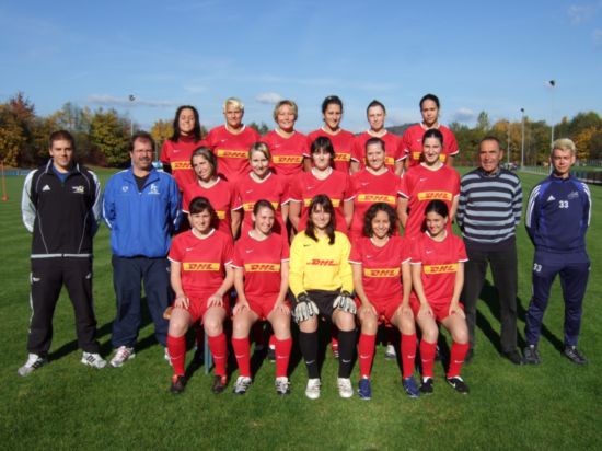 Hinten von links: Heiner Brecht (Trainer), Gebhard Gotterbarm (FCD-Präsident, Kontaktpers. Sponsor), Steffi Korn, Daniela Paul,