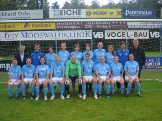 Vorne von links: Matthias Kammerknecht (Trainer), Radost Roser, Sabrina Burger, Simona Strapcans, Maxine Ries, Lisa Schneider, Lisa Schmieder, Silvia Rimele, Marleen Armbruster, Lea Strödter, Jürgen Schwab (Betreuer)