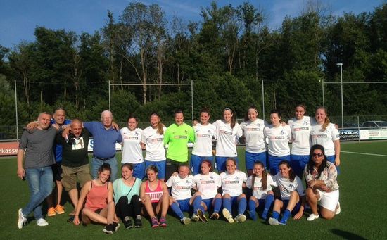 Sudholdt, Julia Schmidt, Steffi Korn, Gebhard Gotterbarm (FCD Präsident), Heiner Brecht (Trainer)