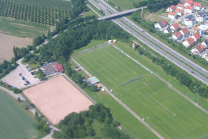 Luftaufnahme mit altem Hartplatz