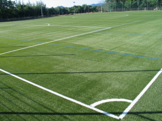 Links der neue Kunstrasenplatz