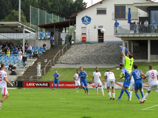 Oberliga: FCD 1 - VfR Mannheim 0:1 (0:1) Nach dem VfR Aalen bekam es der FC Denzlingen mit einem weiteren Meisterschaftsfavoriten zu tun und die Gäste vom VfR Mannheim bestätigten vor ca. 300 Zuschauern durchaus diese Einstufung. Bereits in der 5. Min. lag ihr Führungstreffer in der Luft, als Volkan Ronas Flachschuss vom Innenpfosten ins Feld zurückprallte. Die Gäste blieben weiterhin spielbestimmend, der FCD, der bei brütender Hitze viel Luftarbeit leistete, war zunächst auf Konter aus. In der 7. Min. flog dabei ein Schuss von Sandro Rautenberg übers Tor. Zwei Minuten später der nächste Vorstoß der Gastgeber, der aber ebenfalls nichts einbrachte. Auf der Gegenseite wurde in der 9. Min. ein platzierter Schuss von Lennart Thum eine Beute von FCD-Schlussmann Oliver Gümpel. In der 15. Min. war Gümpel jedoch machtlos. Nach schöner Vorarbeit von Ex-Profi Alexander Esswein sorgte VfR-Torjäger Pasqual Pander, der bereits in der Vorsaison erfolgreichster Schütze der Rasenspieler war, für das 0:1. In der 22. Min. beinahe der Ausgleich, aber der Gästetorhüter konnte einen abgefälschten Schuss gerade noch aus der Gefahrzone lenken. Gümpel verhinderte anschließend das in der Luft liegende 0:2. Glück hatten die Gäste in der 29. Min., als eine missglückte Rückgabe beinahe ins eigene Tor gerollte wäre, aber ihr zurückeilender Torhüter das Leder gerade noch einholen konnte. Der schönste Spielzug der Einheimischen bis dahin, führte leider in der 32. Min. nicht zum erfolgreichen Abschluss. So blieb es bis zum Halbzeitpfiff bei der insgesamt verdienten Gästeführung. Der FCD kam nach Wiederbeginn mit Schwung aus der Kabine und der VfR hatte Glück, das Rautenberg in der 47. Min. eine Hereingabe nur um Zentimeter verfehlte. Auch ein Torschuss von Matthis Eggert brachte nichts ein. Nach etwa einer Stunde lag jedoch die Vorent- scheidung in der Luft. Durch einen Patzer der FCD-Defensive hatten plötzlich gleich drei Gästestürmer freie Bahn, aber der aus seinem Tor herausstürzende Gümpel verhinderte das fast sichere 0:2. So nach und nach zehrte die große Hitze an den Kräften der Akteure. Der FCD war zwar weiterhin um den Ausgleich bemüht, aber die routinierten Gäste brachten die knappe Führung über die Zeit. Der FCD musste leider auf den verletzten Strategen Sebastian Weizel verzichten. Ihn sollte eigentlich Issa Boye ersetzen, der mussten dann aber kurz vor Spielbeginn ebenfalls passen. Für ihn kam Julde Riggenmann aufs Feld, der jedoch noch vor dem Halbzeitpfiff ebenfalls verletzt vom Feld musste. Kurz vor Spielschluss sah Hendrik Gehring noch Gelb-Rot und fehlt damit am nächsten Mittwoch beim Pokalspiel in Prechtal. Positives gibt es aber auch zu vermelden: Der FCD hat mit Marcel Hiller einen neuen Stadionsprecher, der seine Sache souverän erledigte und somit einen gelungenen Einstand feiern konnte. (ds) | ||||||||||||||||||||||||||||||||||||||||||||||||||||||||||||||||||||||||||||||||||||||||||||||||||||||