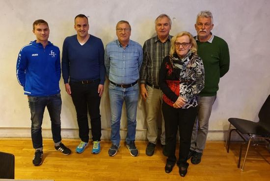 ![]() Der neue Vorstand von links:: Marvin Schindler (Jugendleiter), Nick Schäffauer (neu, stellv. Jugendleiter), Markus Schopp (Beisitzer), Jan Kath (2. Vorsitzender), Elke Niepenberg (Kassenwartin Hauptverein + Jugend), Michael Kuwert (1. Vorsitzender), Walter Ott (neu, Beisitzer), Horst Bühler (Sportl. Leiter), Klaus Reichenbach (neu, Geschäftsführer) Nicht auf dem Bild: Beisitzer/-in Gregor Kuwert und Judith Boenke sowie die Kassenprüfer Stefan Reinbold und Jo Trenkle | ||